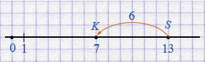 На координатной прямой отметьте точку S(13). От нее отложите влево 6 единичных отрезков и отметьте точку K. Найдите координату точки K.